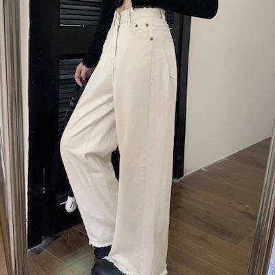2024秋冬パンツ ロング丈 デニム ジーンズ ワイド ハイウエスト 美脚効果 脚長効果 細見え 秋 白 ホワイト おしゃれ かわいい 韓国ファッション レディース お出かけ