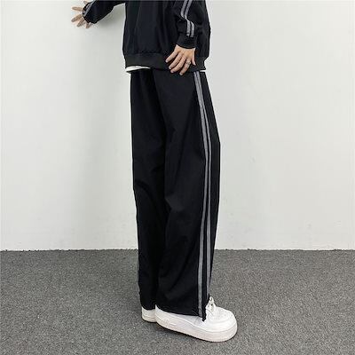2024 春秋 2点セット ユニセックス トップス お出かけ 羽織り ショート丈 セットアップ ルーズ サイド ボトムス ストレート系冬 ゆったり サイズワイドシルエット リラックストラック