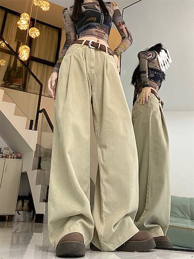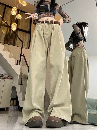 2024 パンツ ロング丈 ハイウエスト 美脚効果 脚長効果 細見え 白 おしゃれ かわいい 甘め 韓国系ファッション レディース お出かけ 秋冬