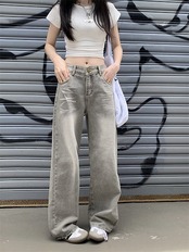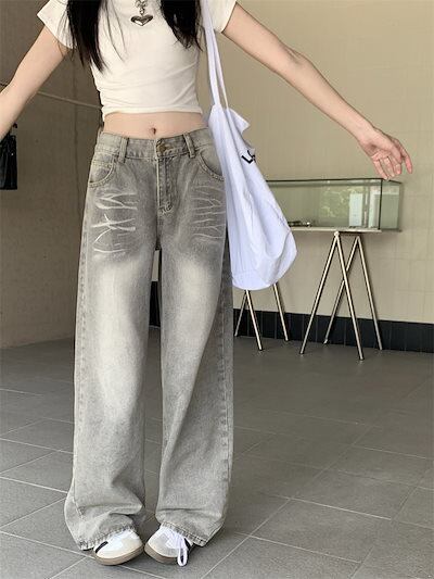 2024春夏パンツ デニム ジーンズ ロング丈 ハイウエスト 美脚効果 脚長効果 細見え 秋冬 おしゃれ 加工 かわいい 韓国ファッション レディース お出かけ