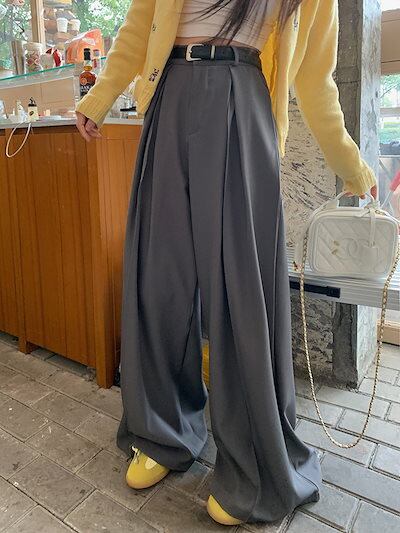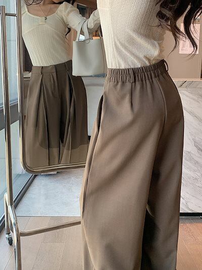 2024 春夏パンツ ロング丈 ワイド ストレート ハイウエスト 美脚効果 脚長効果 細見え 夏 茶色 黒 おしゃれ かわいい 韓国ファッション レディース お出かけ