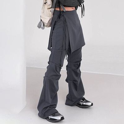 2024 春夏パンツ ロング丈 ワイド 韓国ストリート ハイウエスト 美脚効果 脚長効果 細見え かわいい ゆったり ルーズ カジュアル ファッション系 レディース お出かけ