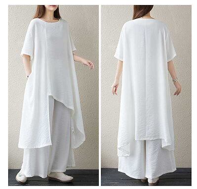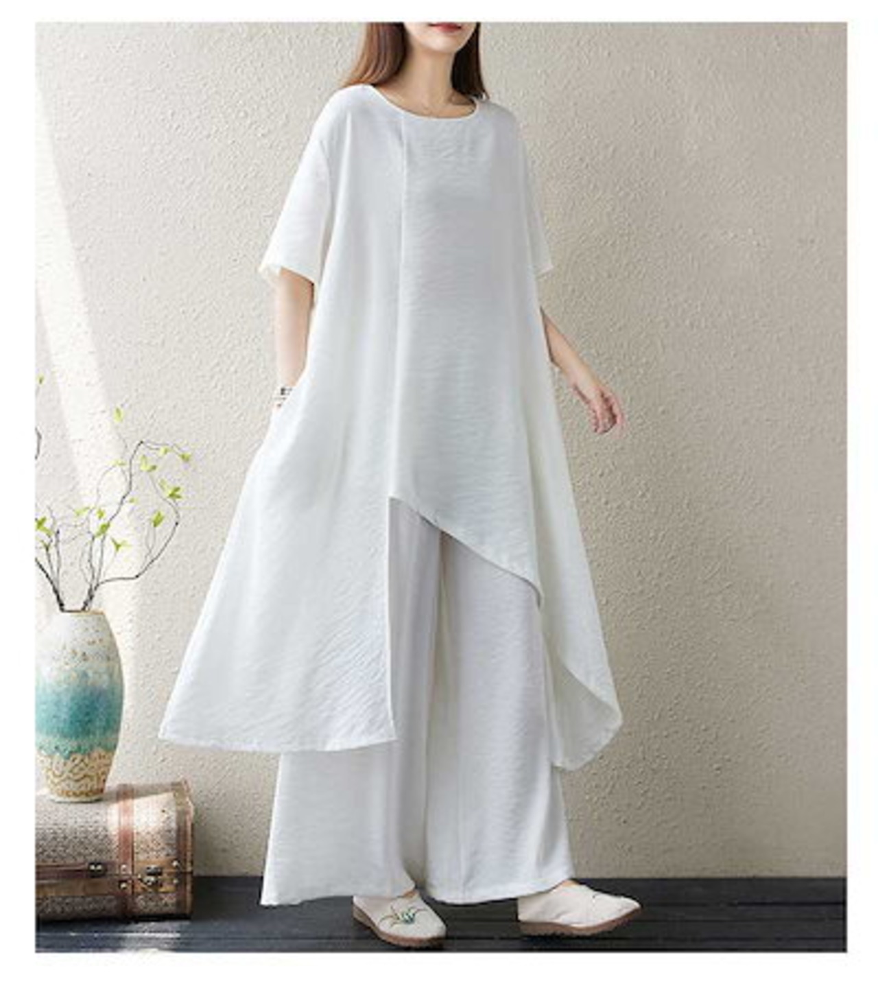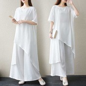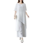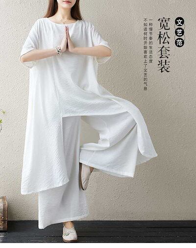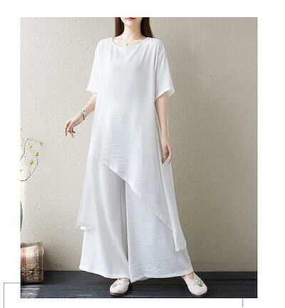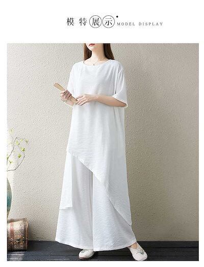 「ファットガール」 2024夏新品 上下セット 綿麻 ブラウス+ワイドパンツ リネン 大きいサイズ 体型カバー レディース ホワイト セットアップ ヨガウエア ピラティス メガ割