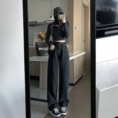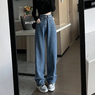 ワイドパンツ レディースクロス 着痩せ ジーンズ ロングパンツ レディース服 デザイン感 ハイウェストゆったり 長ズボン ロングズボン ワイドパンツ