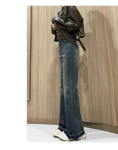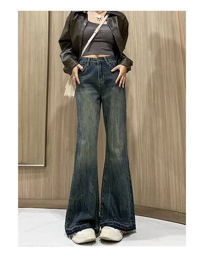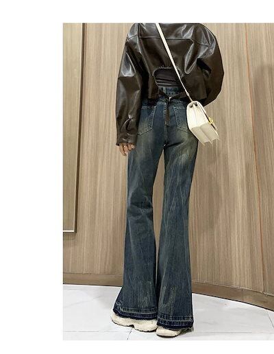 大きいサイズ デニムフレアパンツ 美脚 デザイン ワイドパンツ レディース トレンド ゆったり 無地ジーンズ 厚手 裏起毛