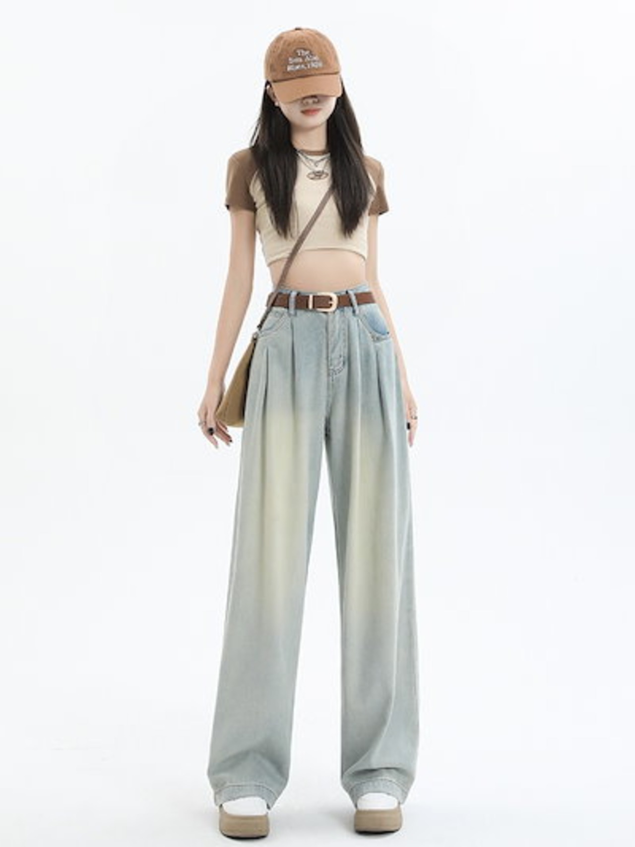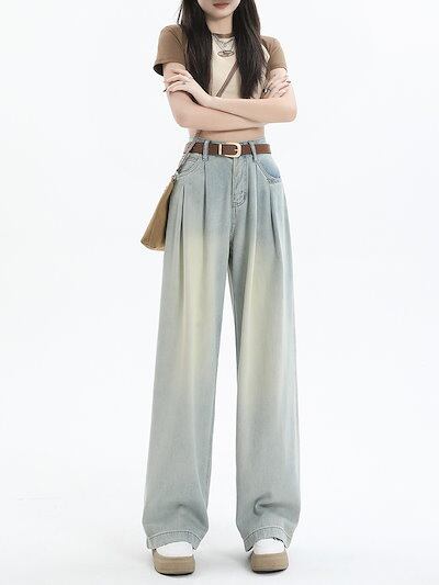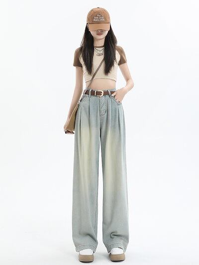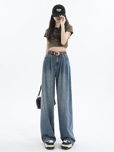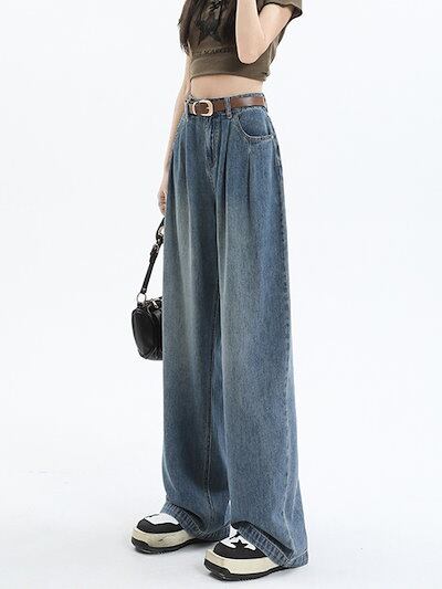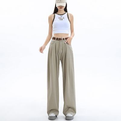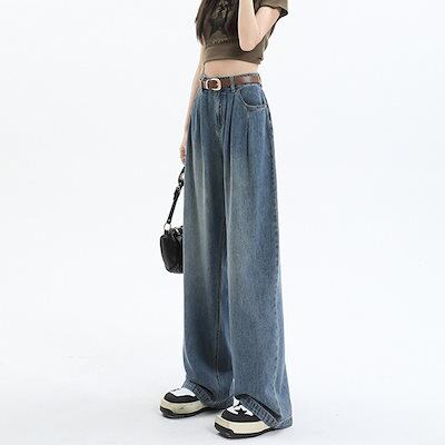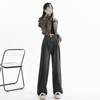 デニムパンツ 脚長効果!百掛けフレンチヴィンテージ 韓国ファッションワイドパンツ美脚ワイドパンツ スウェットパンツ デニムテーパードパンツ ゆったり ワイドパンツ レディース ロングパンツ