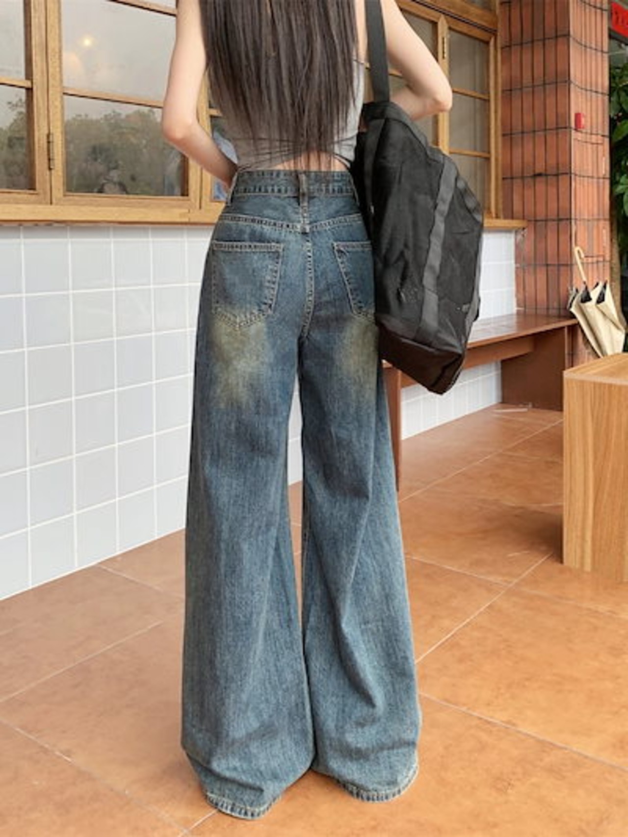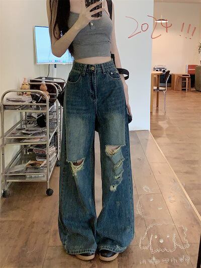 2024夏 韓国 デニムパンツ ボトムス ジーンズ ファッション系スタイル ゆるダボ ジーンズ シルエット加工 カジュアル メンズライク