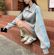 2024 秋 上下2点セット トップス お出かけ 羽織り ショート丈フルラウンドヘム ミニ丈ボトムス ストレート系冬ゆったりレディーススタイルアップワイドお出かけトラック