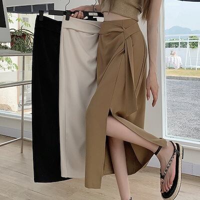 2024 春夏スカート ミモレ丈 Aライン サイドスリット ハイウエスト 美脚効果 脚長効果 細見え 夏 白 黒 茶色 おしゃれ かわいい きれいめ 韓国ファッション レディース お出かけ
