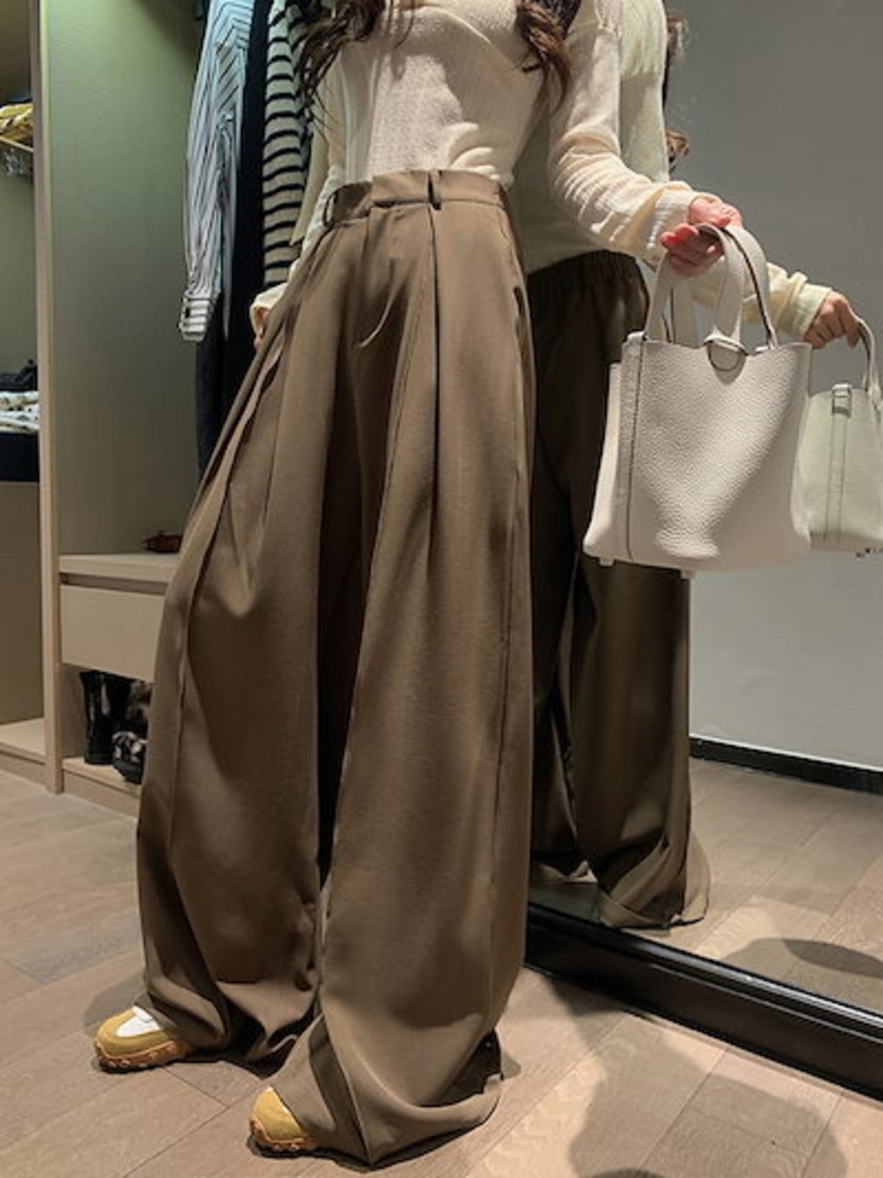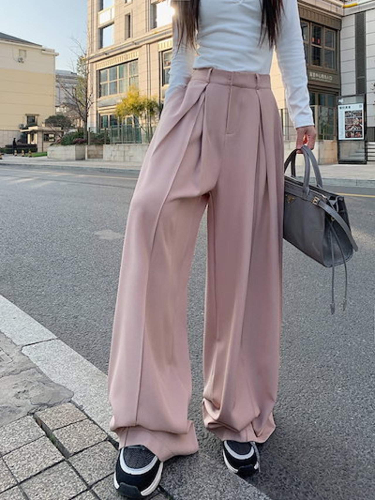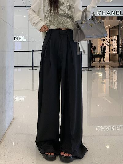 2024 春夏パンツ ロング丈 ワイド ストレート ハイウエスト 美脚効果 脚長効果 細見え 夏 茶色 黒 おしゃれ かわいい 韓国ファッション レディース お出かけ