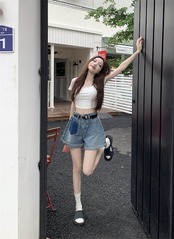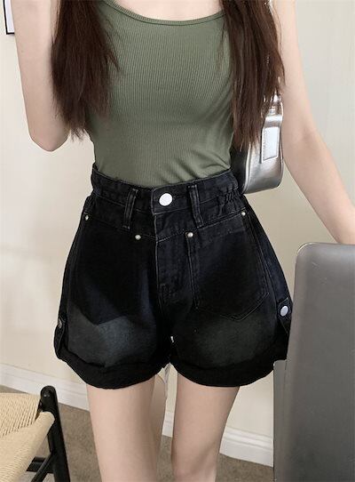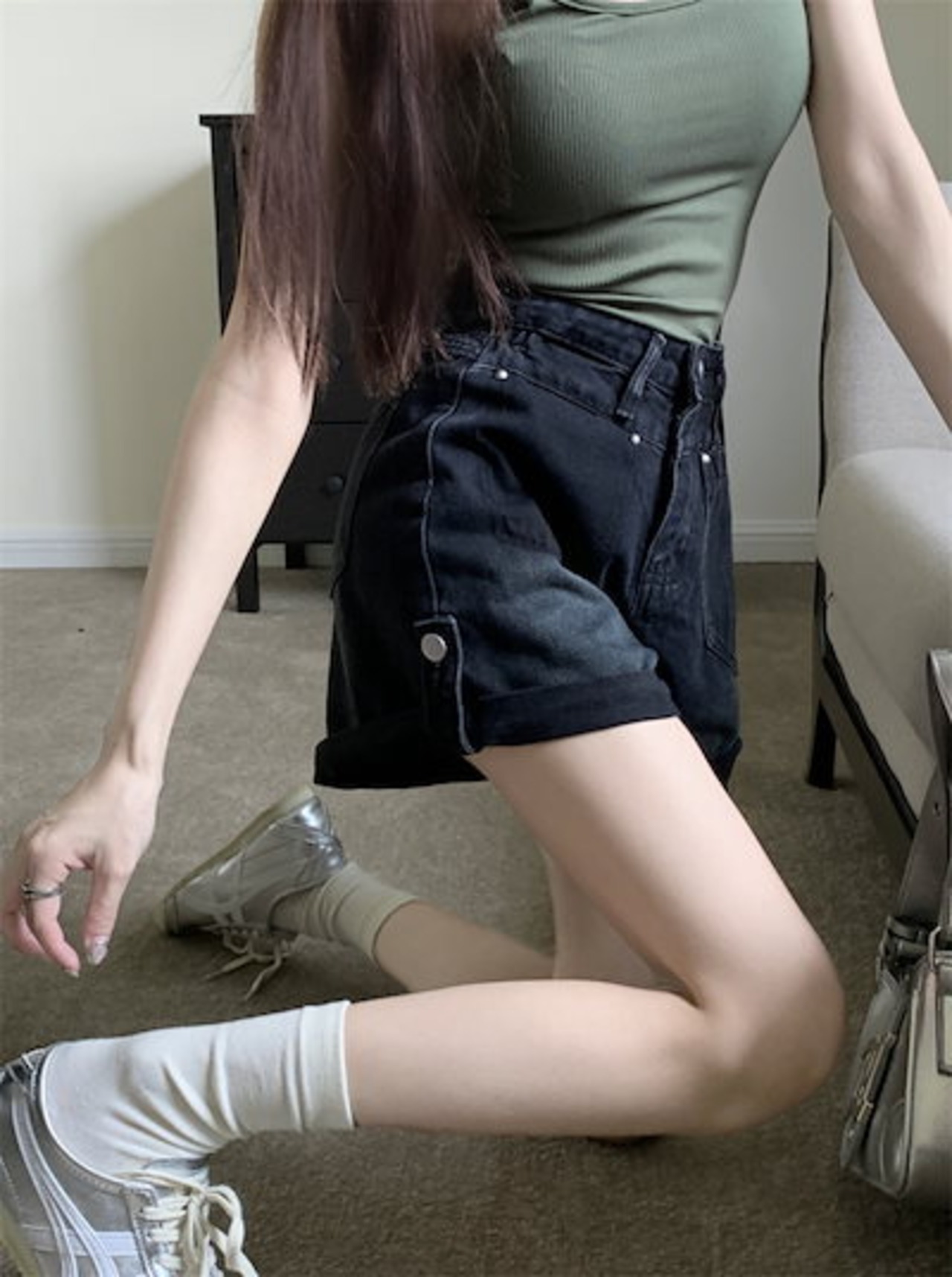 2024 春夏パンツ デニム ジーンズ ショート丈 ロールアップ ハイウエスト 美脚効果 脚長効果 細見え 夏 黒 おしゃれ かわいい 韓国ファッション レディース お出かけ