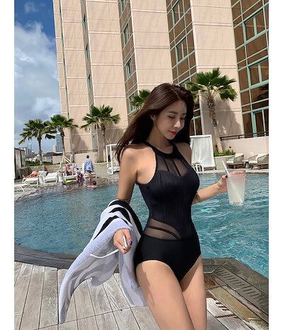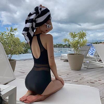 2色 水着 ワンピース レディース モノキニ セクシー 体型カバー 黒 白 無地 透け感 シーシルー ホルターネック 大人カラー 盛れる 谷間見せ 露出 海外 女性用 ワンピ 水着 韓国 かっこいい