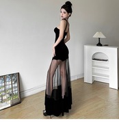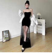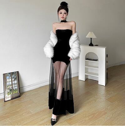 2024夏 透け感 個性的 コーデ ワンピース 女子感レディース色っぽ 女っぽ カジュアルファッション 秋きれいめ大人上品お姉さん襟とフレンチネック可愛さUP型アップ