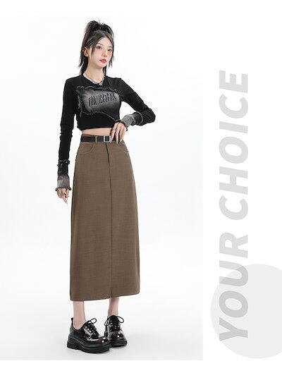 2024 春秋 スカート ロング丈 ポケット ハイウエスト 美脚効果 脚長効果 細見え 夏 おしゃれ ロング かわいい 韓国ファッション レディース お出かけ