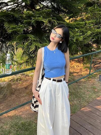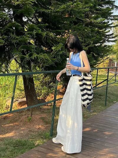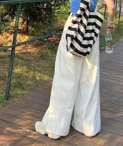 2024 春夏パンツ モップパンツ ワイド ハイウエスト 脚長効果 美脚効果 細見え 夏 白 ホワイト カジュアル おしゃれ かわいい 韓国ファッション レディース お出かけ