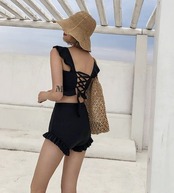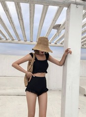 2024 夏 韓国 露出を控えた ファッション ビキニ スイムウェア付き タンキニ スタイルアップ 高校生 大人女子水着