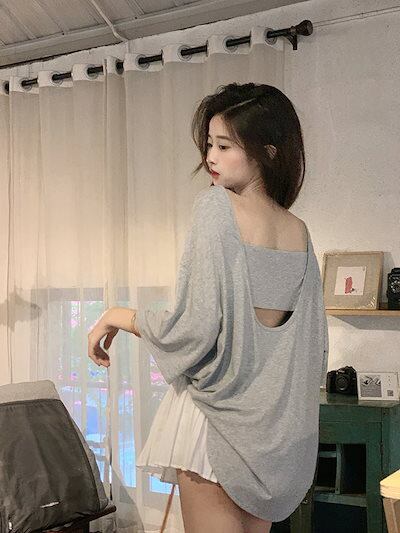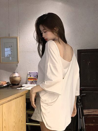 2024夏 韓国トップス シャツ 五分袖 バックオープン ゆったり 細見え 夏 白 黒 大人っぽい おしゃれ かわいい 韓国ファッション レディース お出かけ