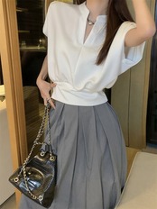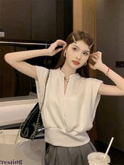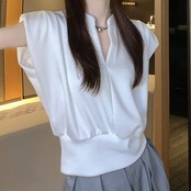 2024 夏 韓国トップス シャツ 半袖 ゆったり 細見え 夏 白 黒 きれいめ 大人っぽい おしゃれ かわいい 韓国ファッション レディース お出かけ