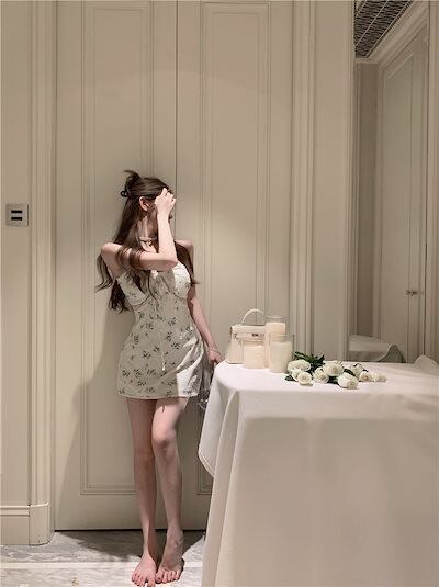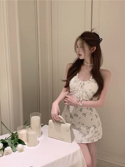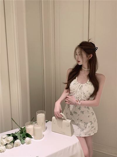 2024春夏 ワンピース ミニ丈 キャミソール ゆったり 夏 カラフル フェミニン韓国系ファッション レディース おしゃれ かわいい キュートネック柄 甘め フレンチカジュアル お出かけ