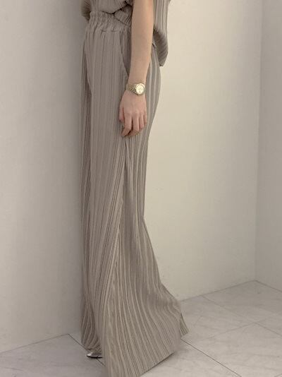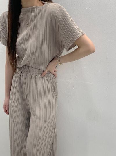 2024夏 韓国セットアップ トップス モックネック 半袖 ロングパンツ ワイド ストレート 細見え 夏 黒 白 おしゃれ かわいい きれいめ 韓国ファッション レディース お出かけ