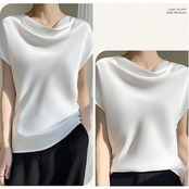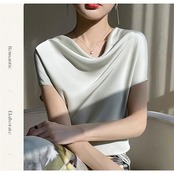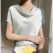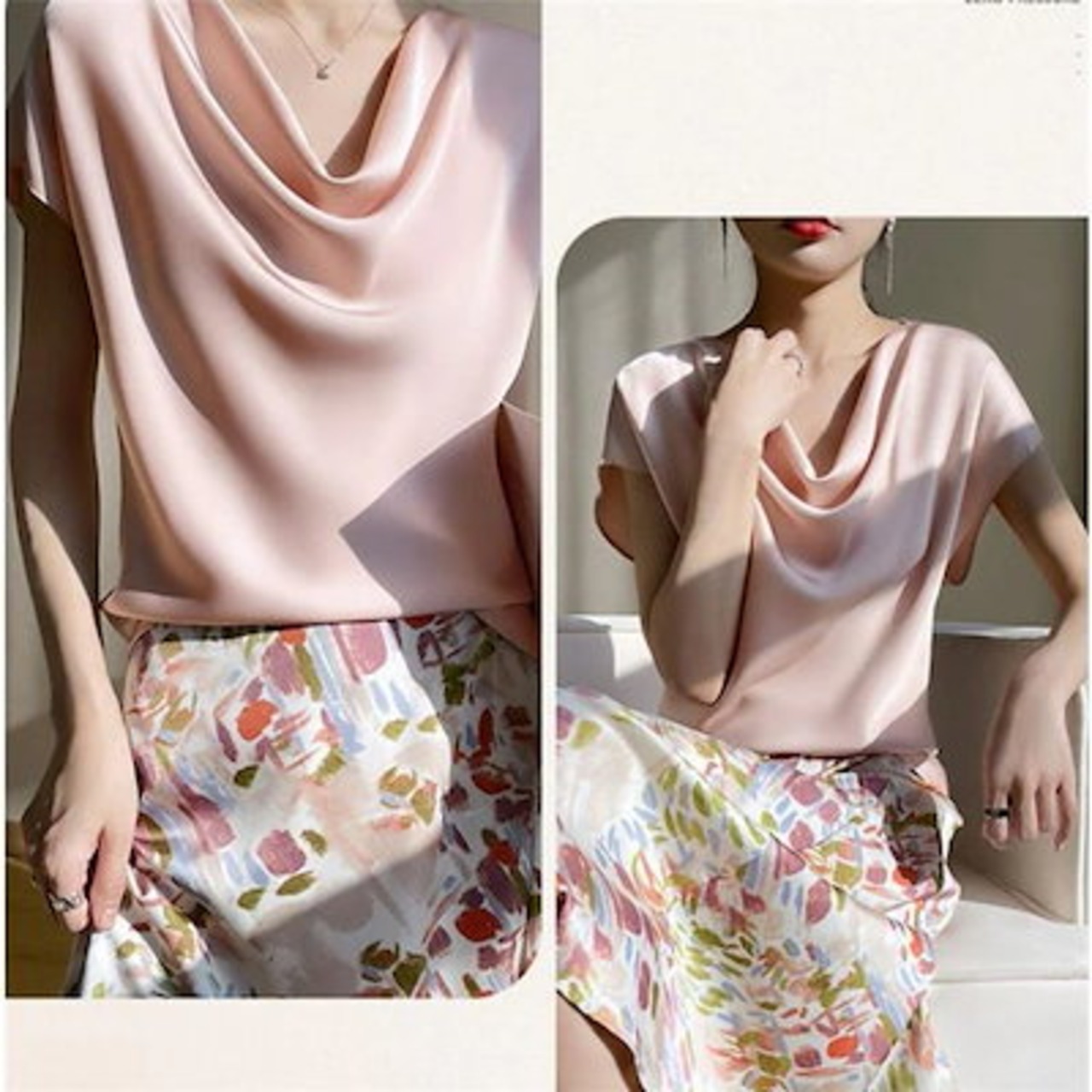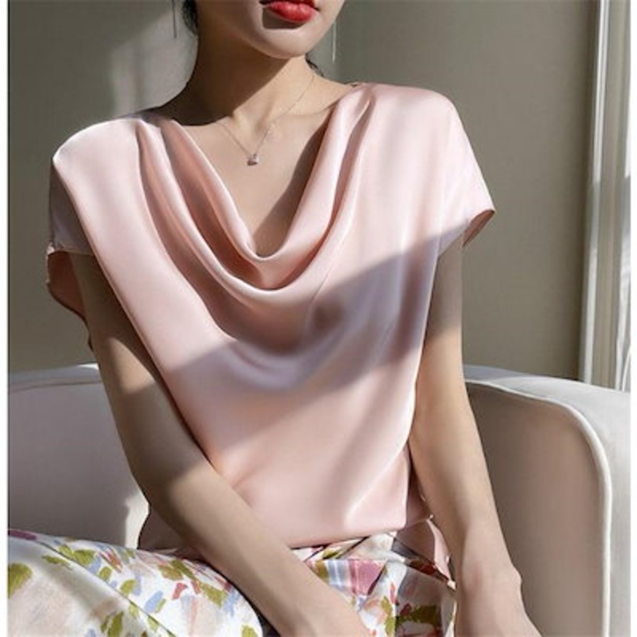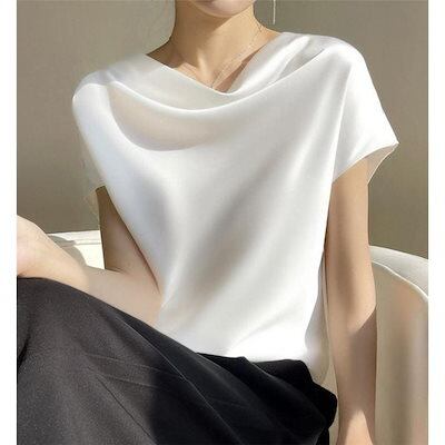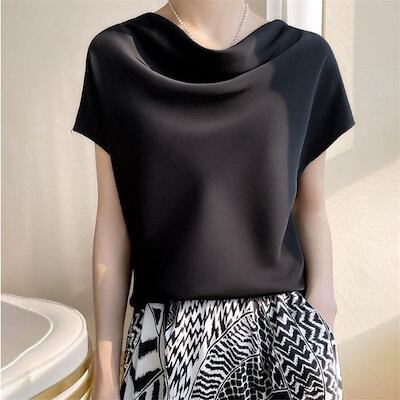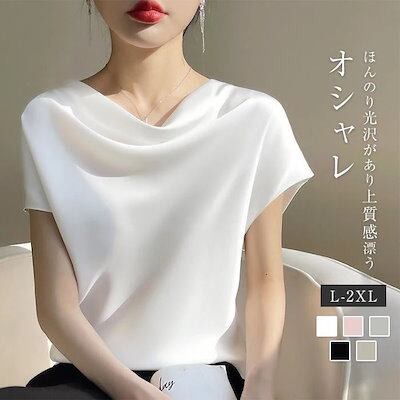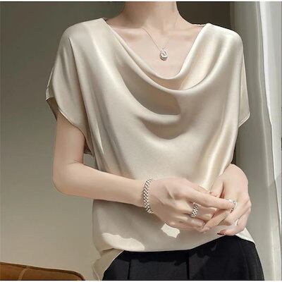 超目玉新品 ブラウス 半袖 レディース おしゃれ トップス シフォンブラウス tシャツ 光沢感 大きいサイズ オフィス 通勤 ゆったり 体型カバー 夏 Tシャツ