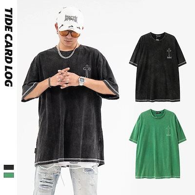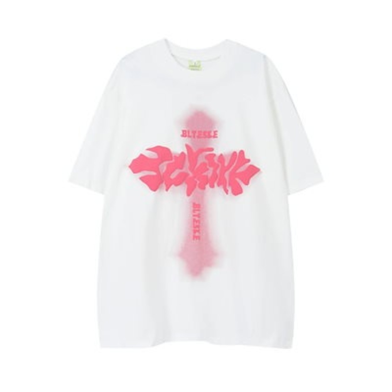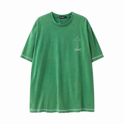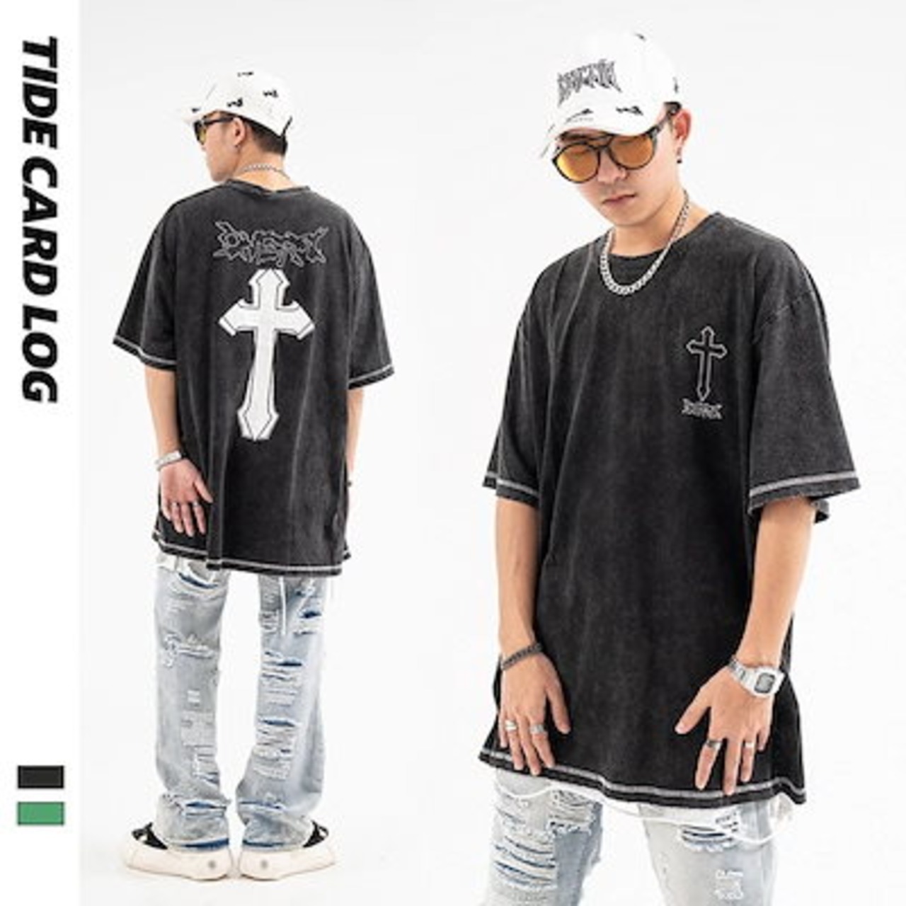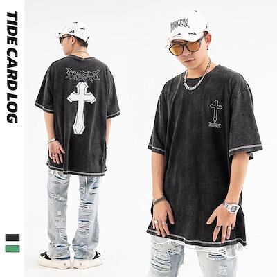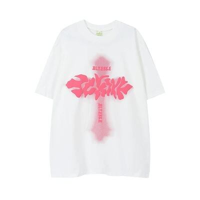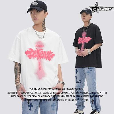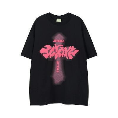 24レトロな十字架プリントクルーネックtシャツレディース服韓国ファッション半袖メンズカップルロンT