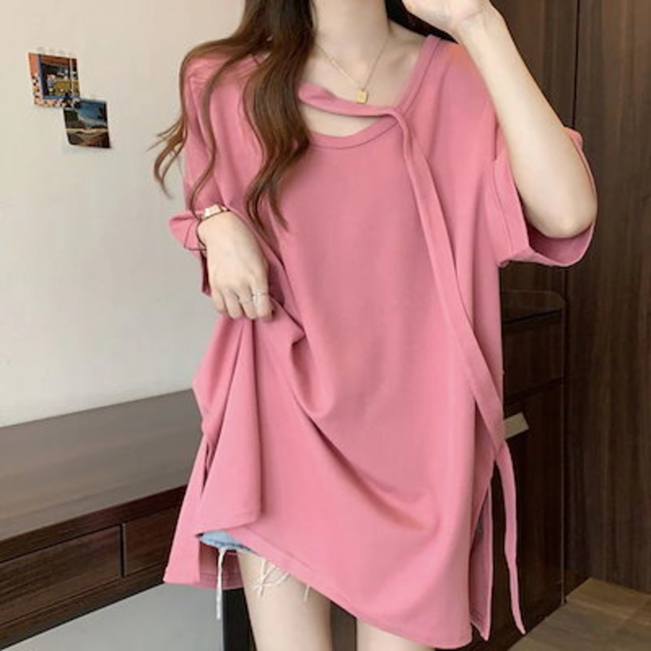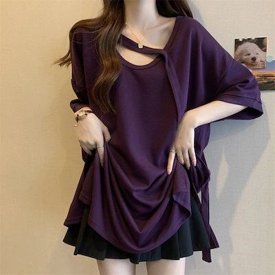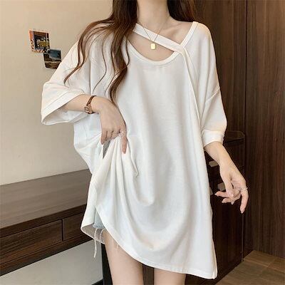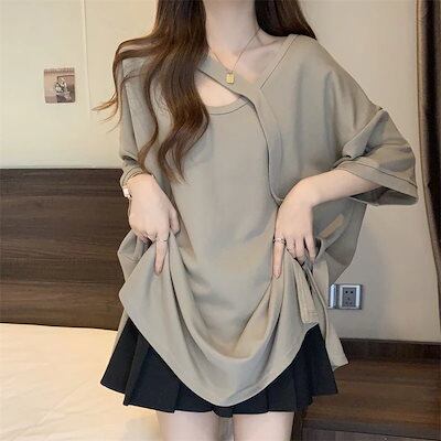 5色 セミロング スリット tシャツ レディース 大きいサイズ 着痩せ 半袖 トップス 服 ルーズTシャツ
