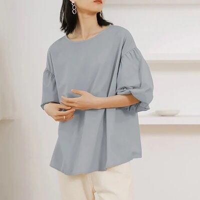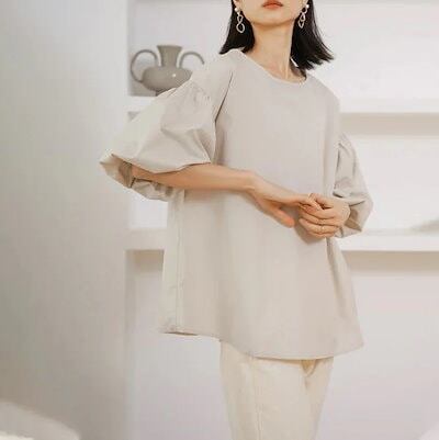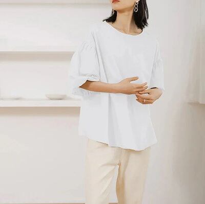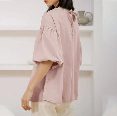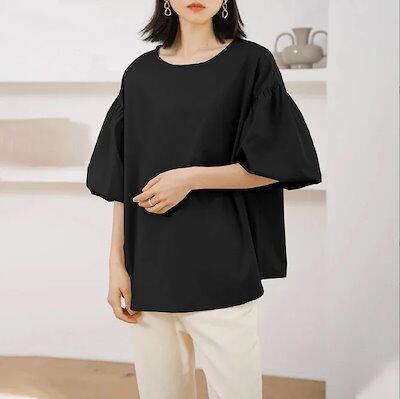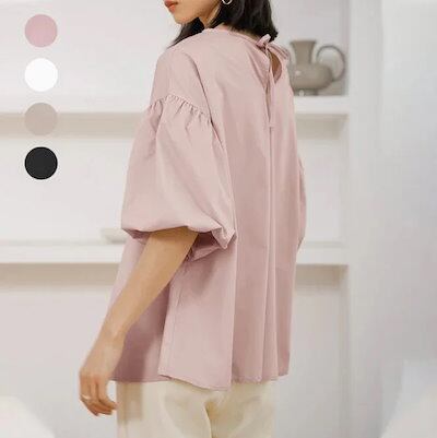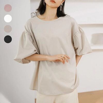 先取りシャツブラウス レディース 長袖 中袖 半袖シャツ トップス レーストップス バルーン袖 可愛い レディース ブラウス スキッパーネック