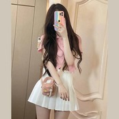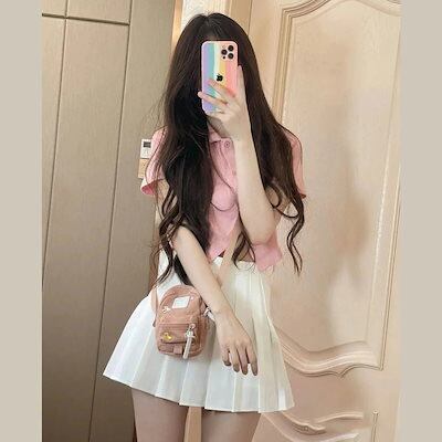【 迅速な出荷 】セットアップ レディース 夏 新作着痩せ ゆったり半袖ショート丈Tシャツトップスレディース+プリーツスカートの2点セット