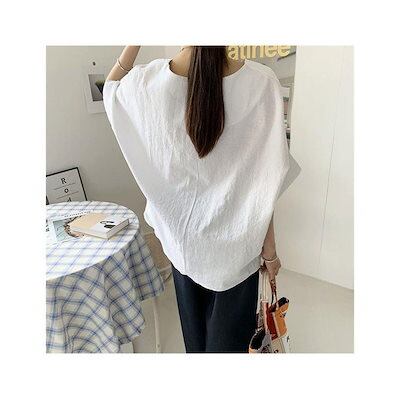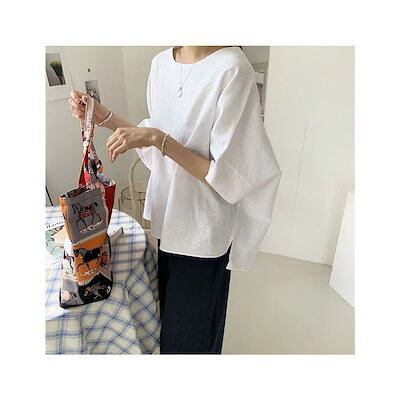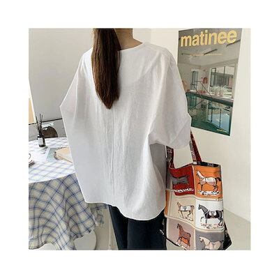 Tシャツ レディース 大きいサイズ 半袖Tシャツ 40代 春夏 ブラウス リネン 白トップス カジュアル オシャレ 韓国風 ゆったりカットソー Tシャツ