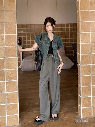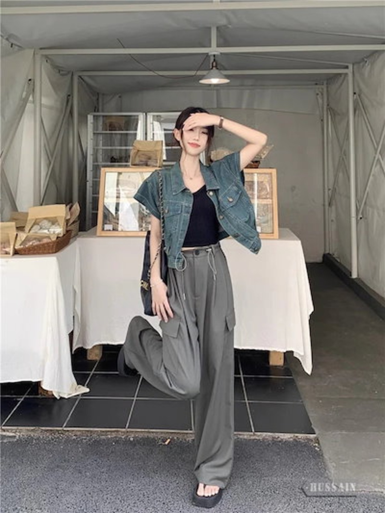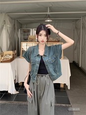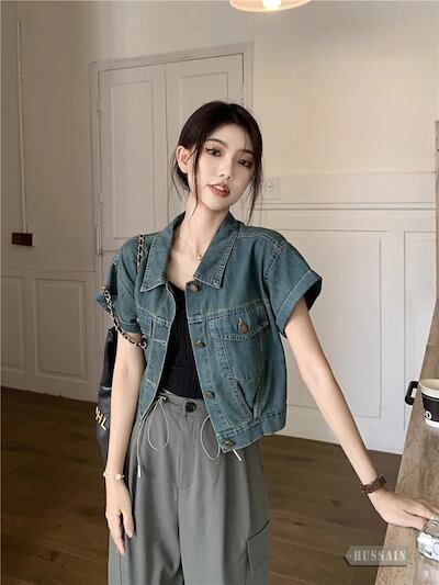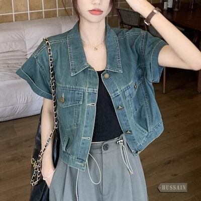 アウター レディース 半袖 デニム ジャケット Gジャン 半袖 襟付き ショート丈 ライトアウター カジュアル レトロ 夏 かっこいい クール 韓国