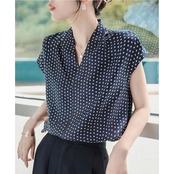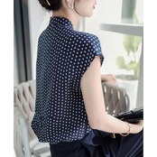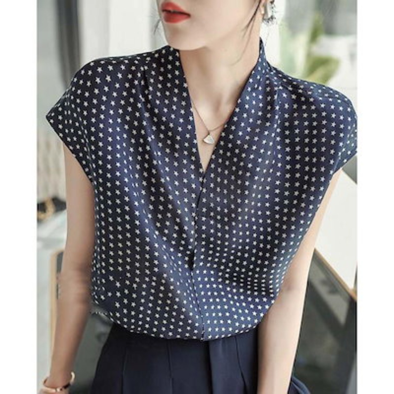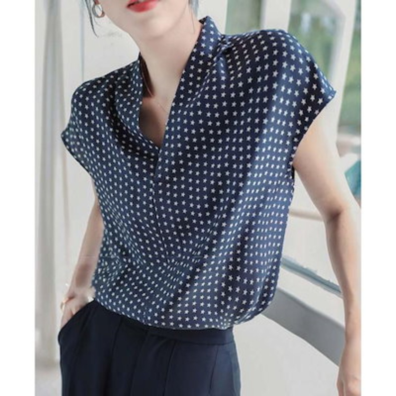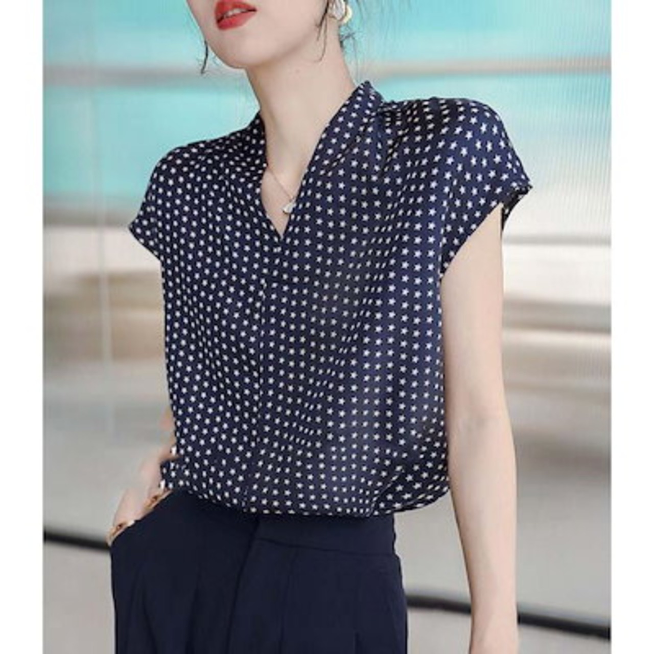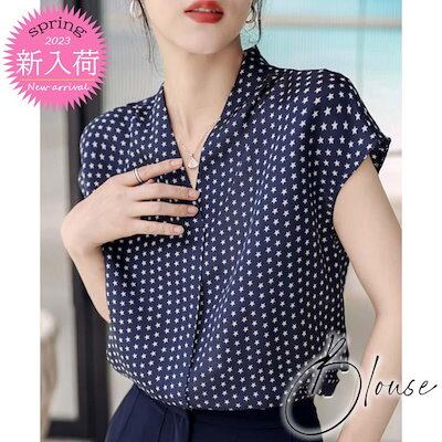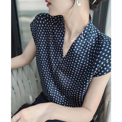 ブラウスレディース 40代 夏 半袖ブラウス 星柄ブラウス オシャレブラウス フレンチスリーブシャツ シフォントップス 韓国風 大人上品 通勤OL ゆったりシャツ