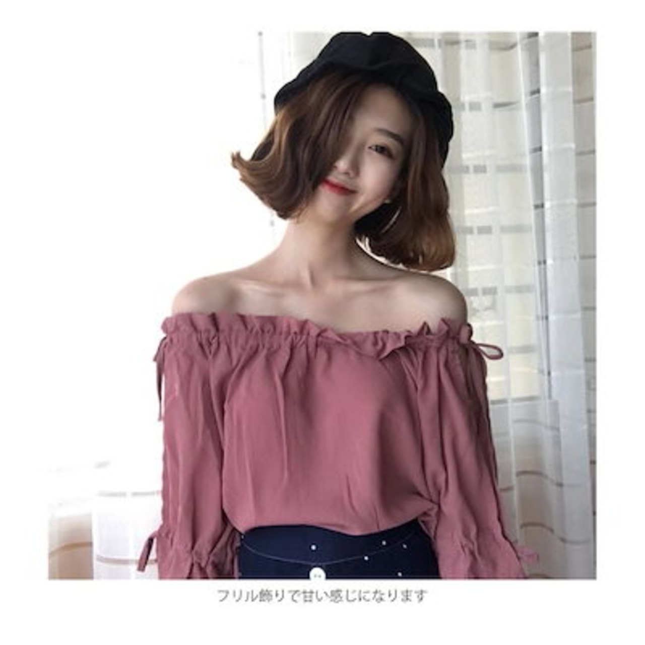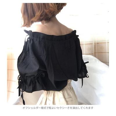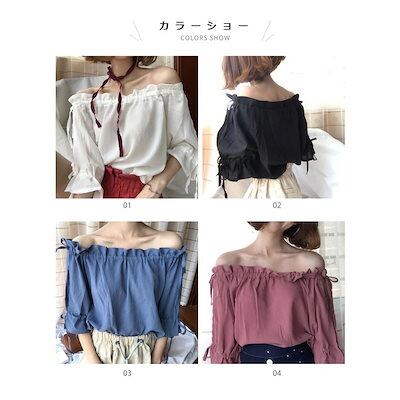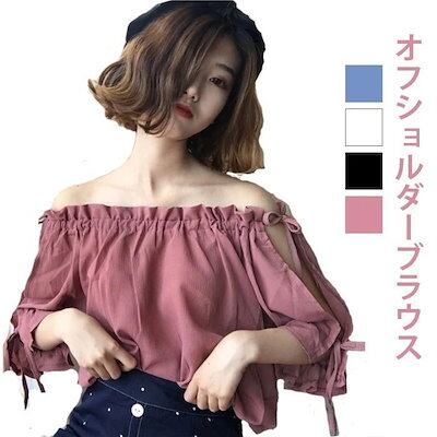 オフショルダー レディース ブラウス 五分袖ブラウス 肩出し 鎖骨見せ フリル リボン セクシー シ