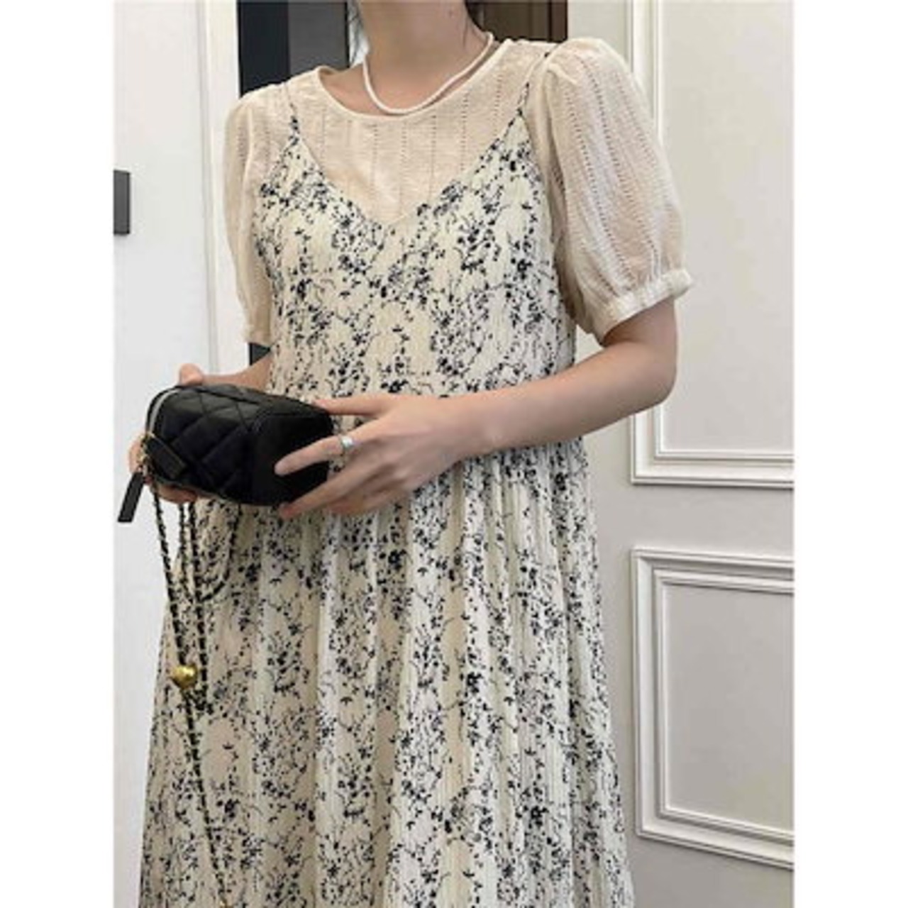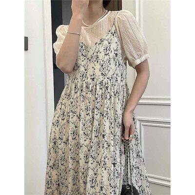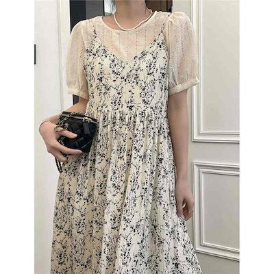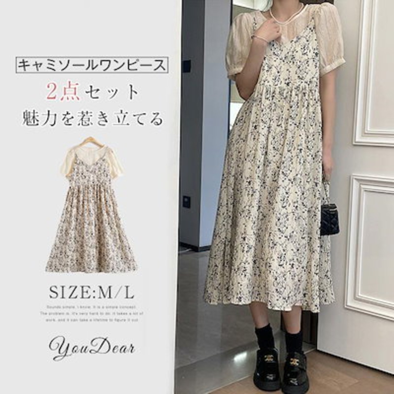 ワンピース セットアップ レディース ロング丈 ワンピース2点セット ブラウス 半袖 キャミソールワンピース 花柄 ワンピース 2点セット トップス
