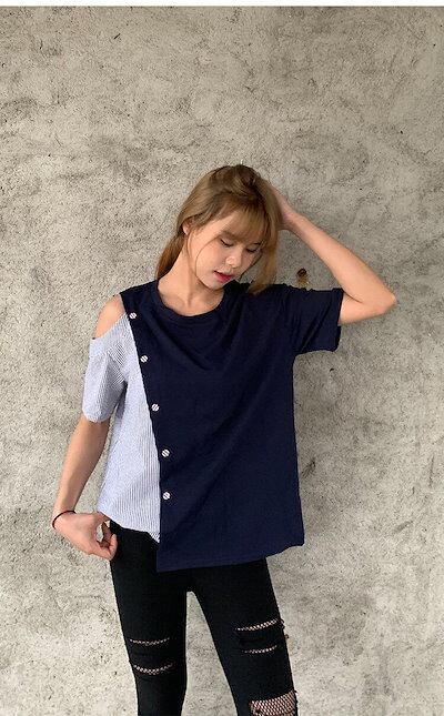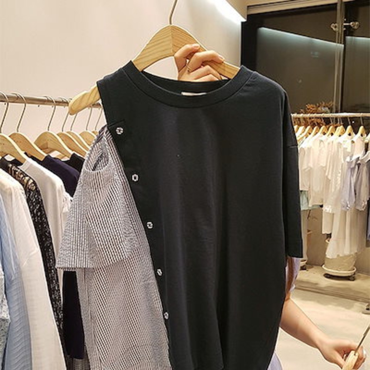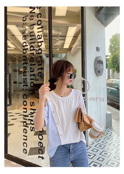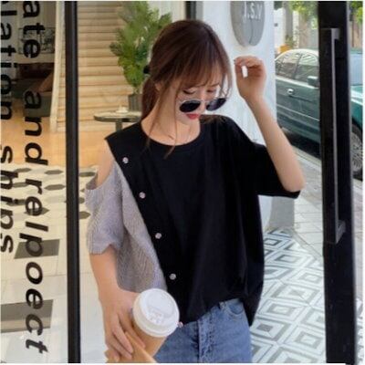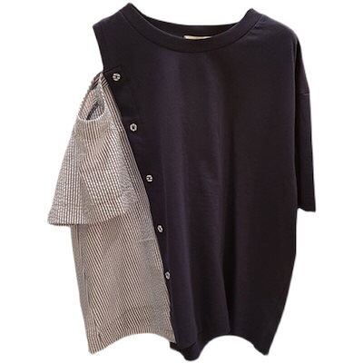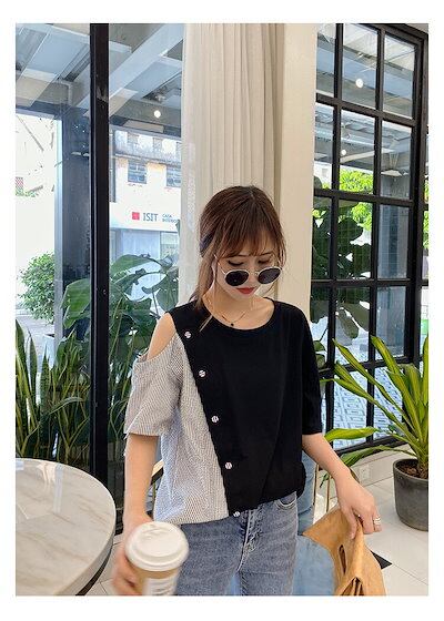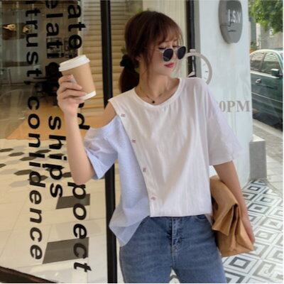 Tシャツ 長袖ブラウス ブラウス 半袖 ストラップ スプライス トップス シャツ レディース おしゃれ tシャツ シアーシャツ シアーシャツ 今っぽシアーシ