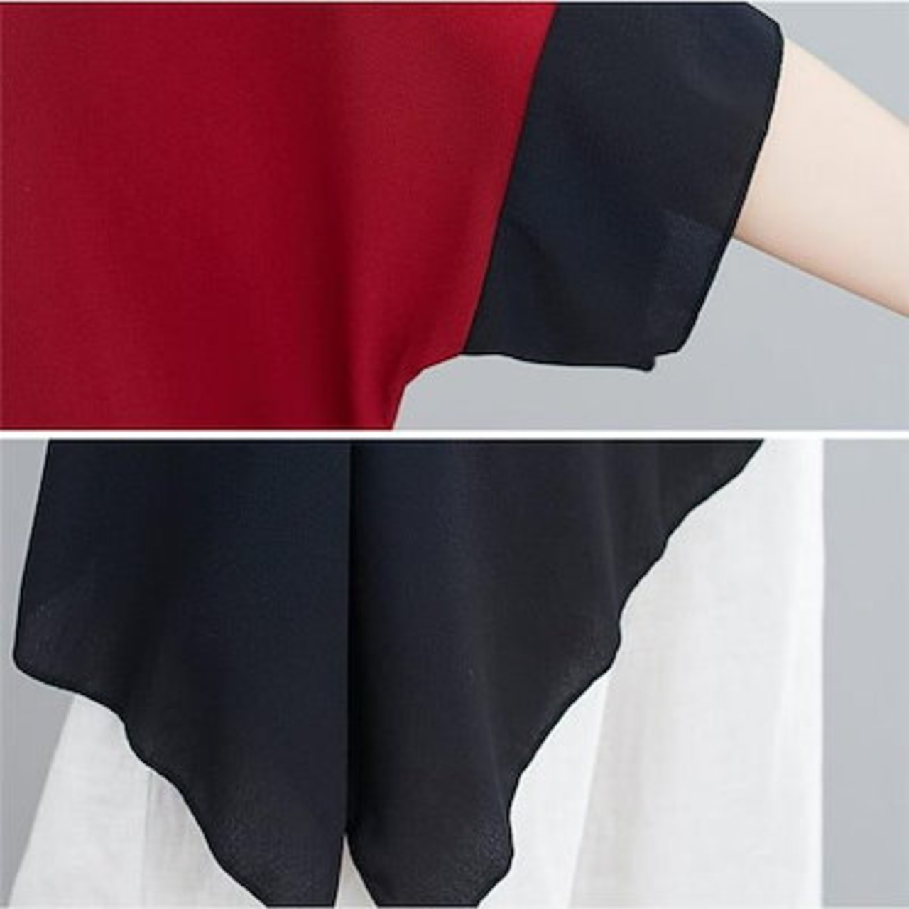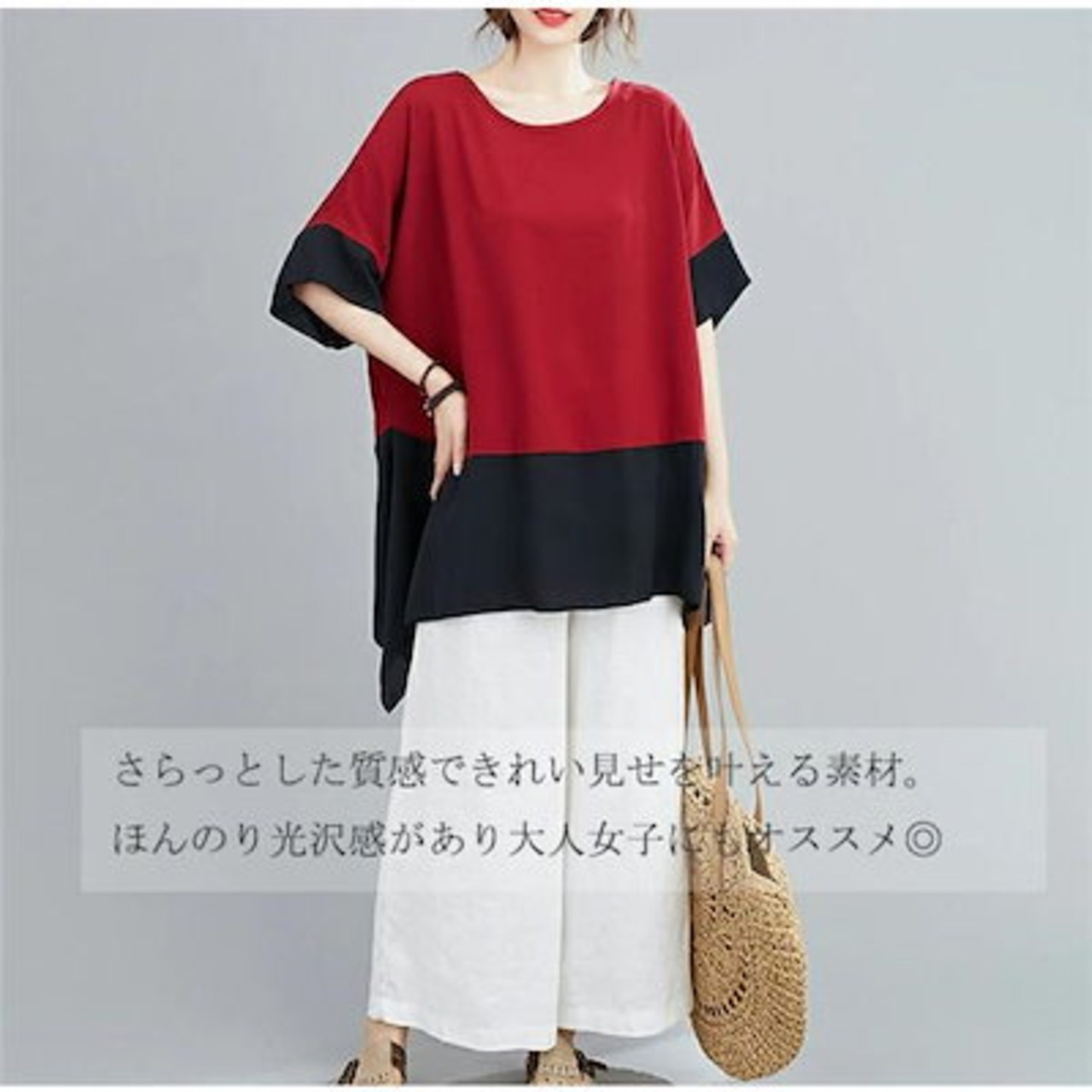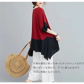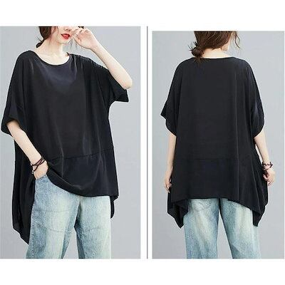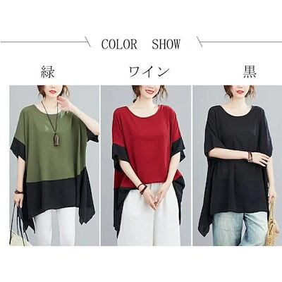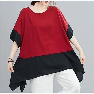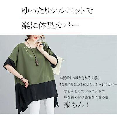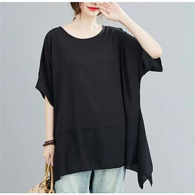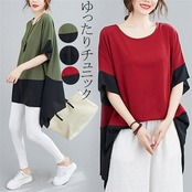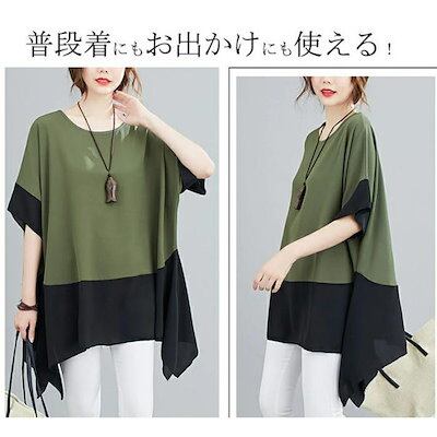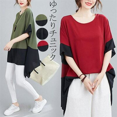 チュニック レディース 大きいサイズ tシャツ Uネック 半そで ブラウス 夏 プルオーバー トップス シャツ tシャツ 切替 半袖 部屋着 体型カバー
