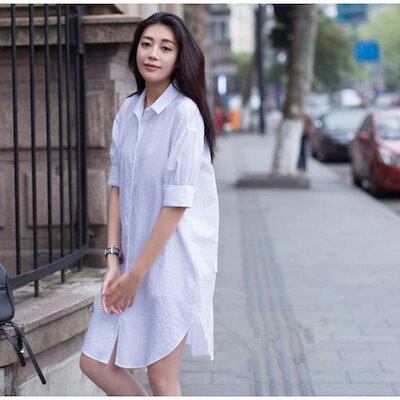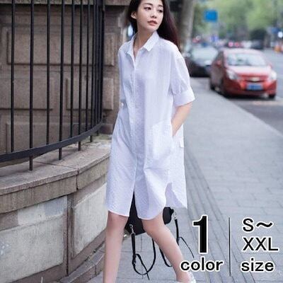 tシャツ Tシャツ シャツ ブラウス 春夏 レディース チュニックシャツ ロングシャツ 無地 半袖 ホワイト 白 ロング丈 春服春 春夏