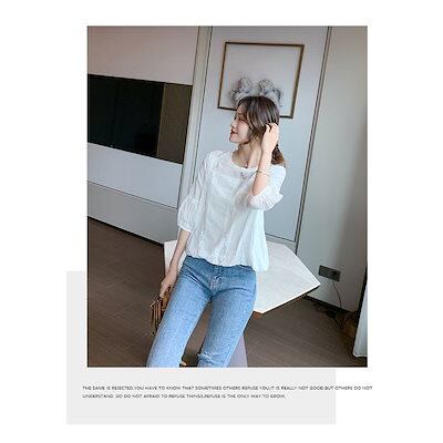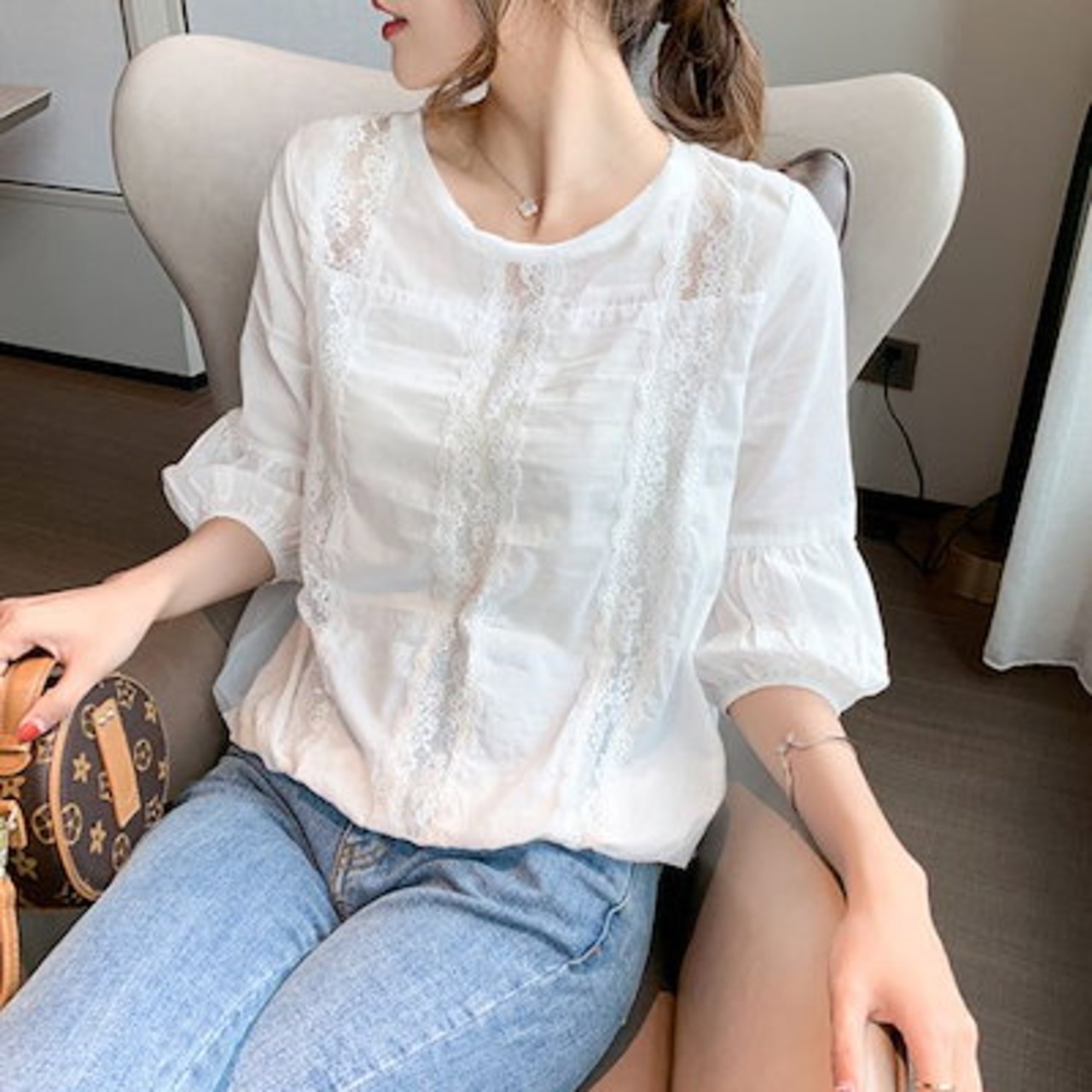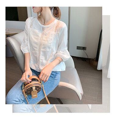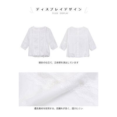 レディース ブラウス ホワイト おしゃれ 五分袖 上品レース トップス レディースファッション