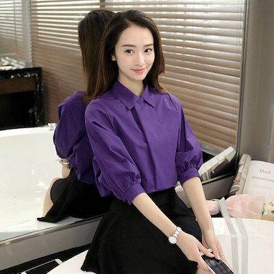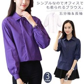 ブラウス シャツ トップス レディース 長袖 五分袖 春夏 秋 OL 通勤 ゆったり 無地 ボリューム袖 シンプル 合わせやすい コッ