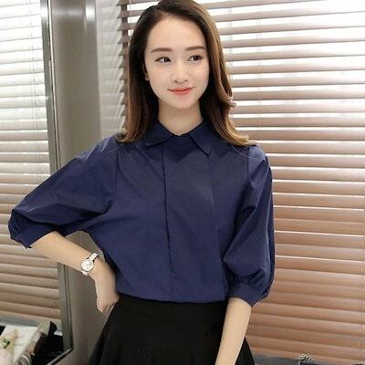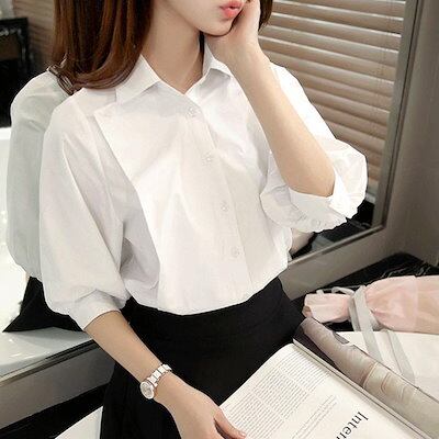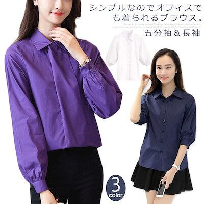 ブラウス シャツ トップス レディース 長袖 五分袖 ボリューム袖 春夏 秋 OL 通勤 ゆったり 無地 シンプル 合わせやすい コッ