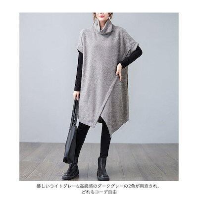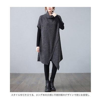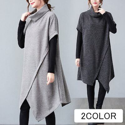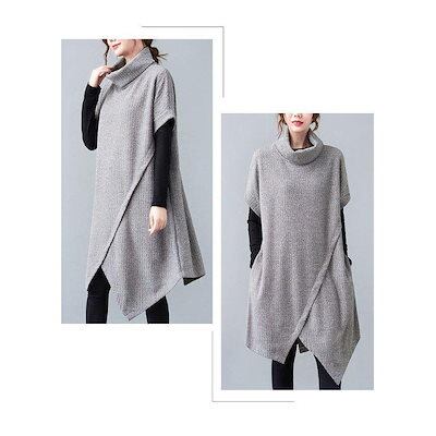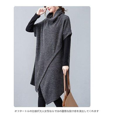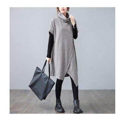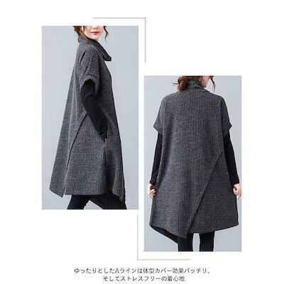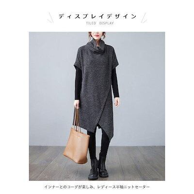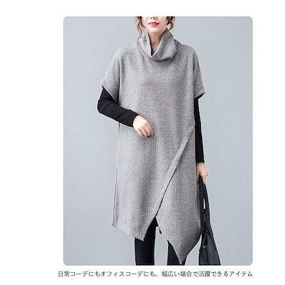 ニットセーター オフタートル レディース ロングベスト ロングセーター 半袖 オーバーサイズ ニット