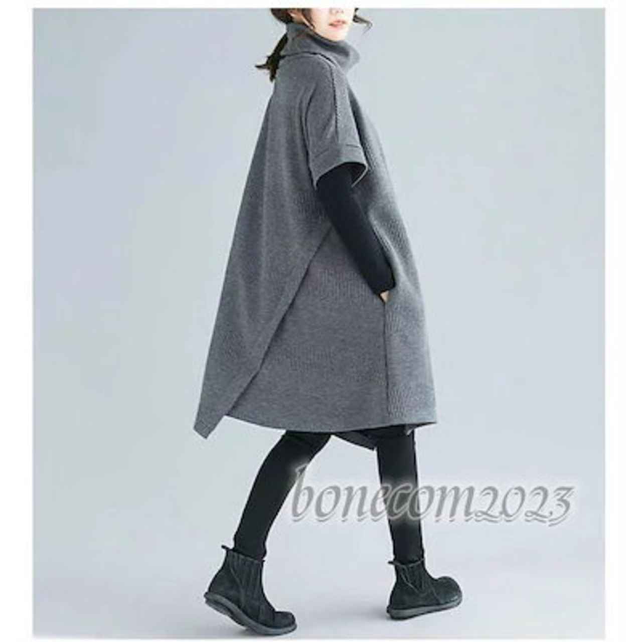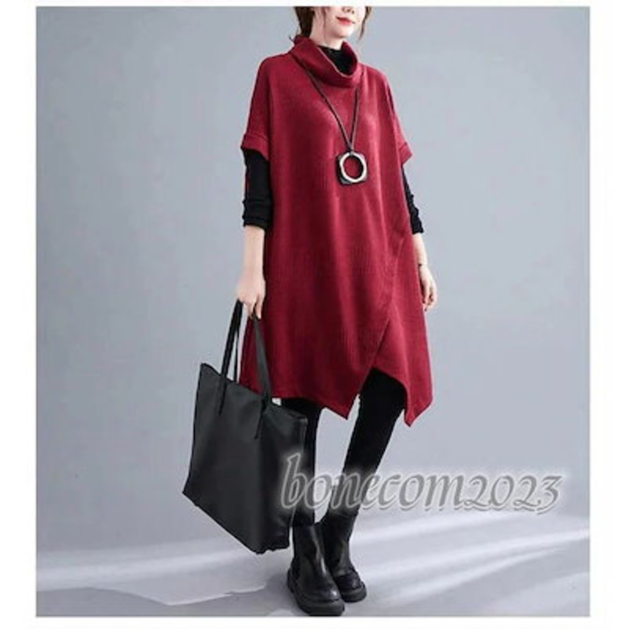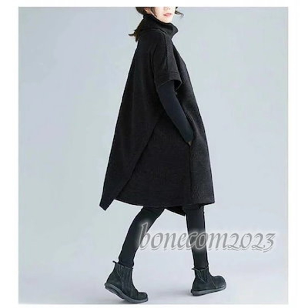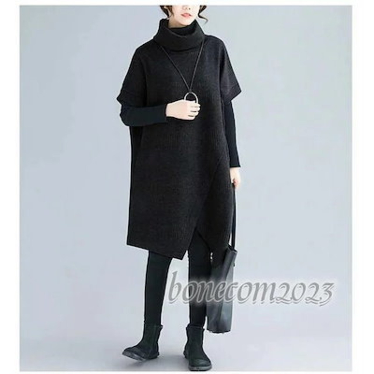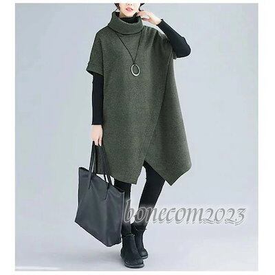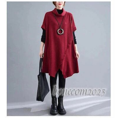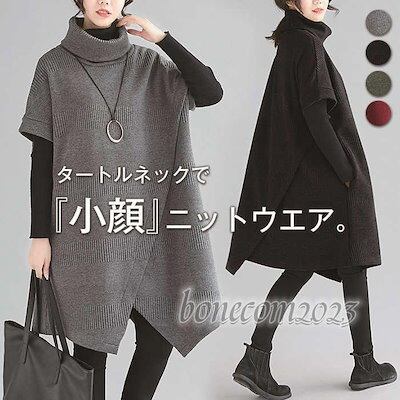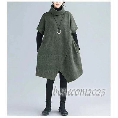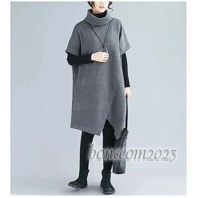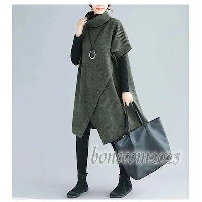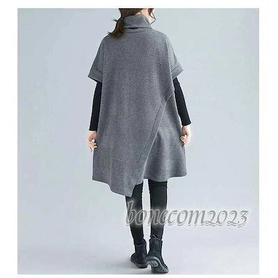 前開き レイヤード ニットウェア タートルネック 秋冬 セーター 半袖 ベスト ジレ 重ね着風 チュニック 大人 レディース プルオーバー ニット シンプル トップス