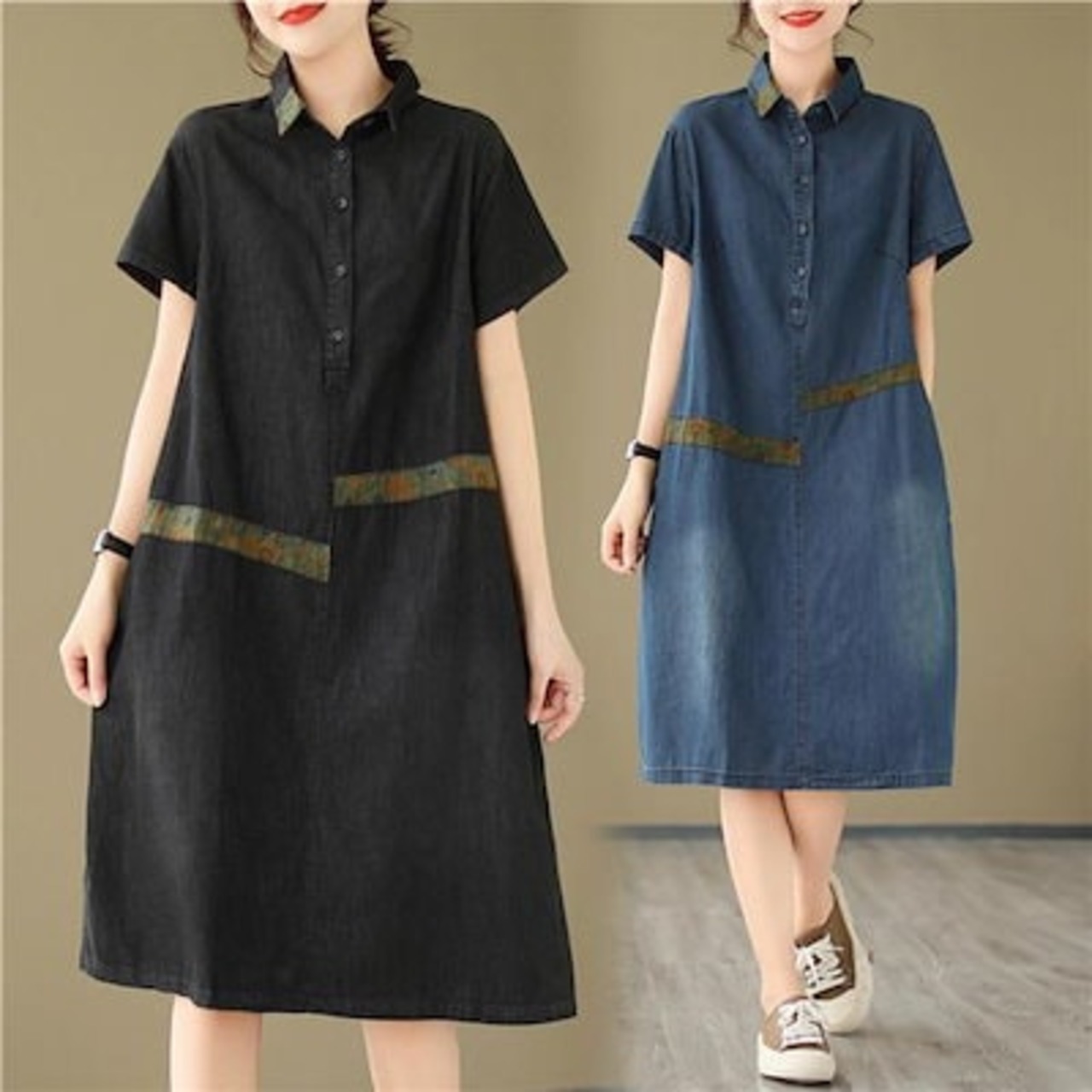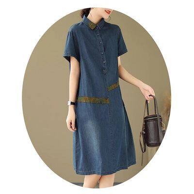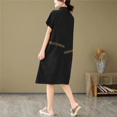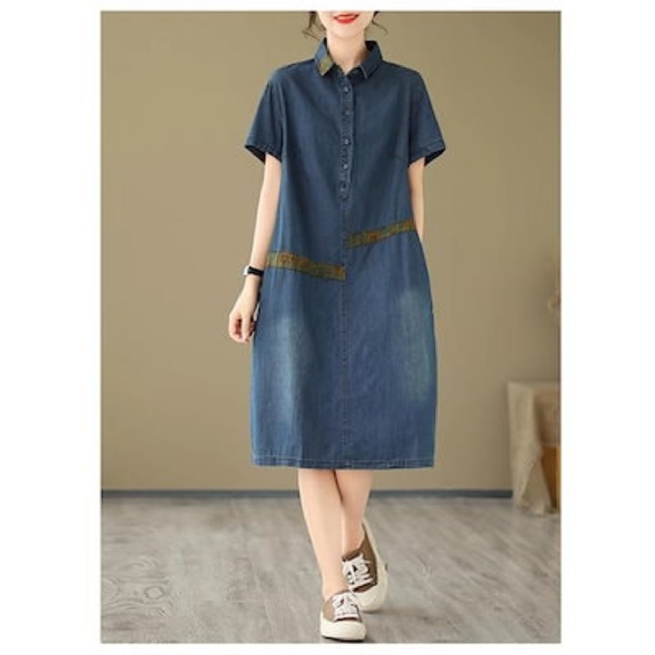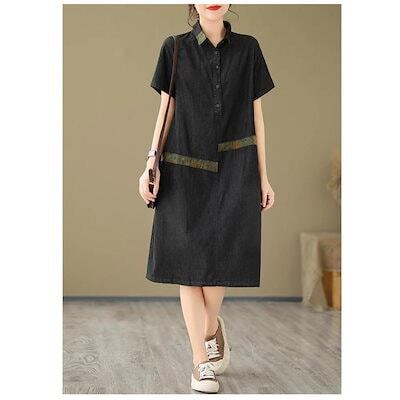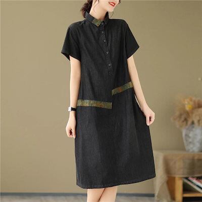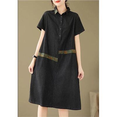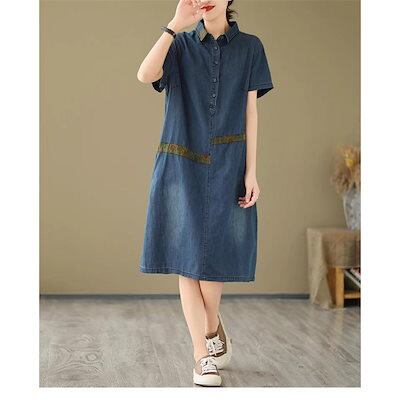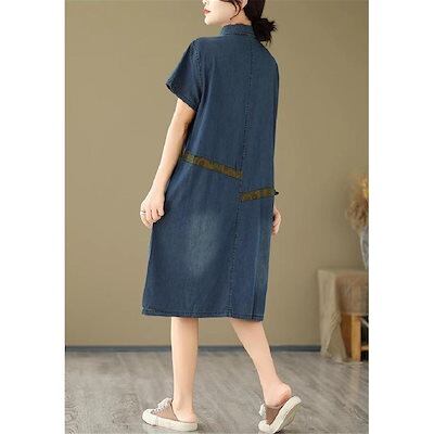 デニムワンピース 半袖 膝丈 ゆったりシルエット 半袖 レディース トップス 大きいサイズ ボディライン拾わず着られる カジュアルながらも上品 大人気