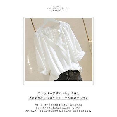 ブラウス レディース 春 夏 春夏 白 シャツ ブラウスシャツ スキッパー ドルマン ゆったり きれいめ トップス 半袖 白シャツ スキッパーシ