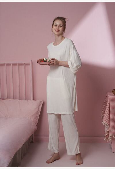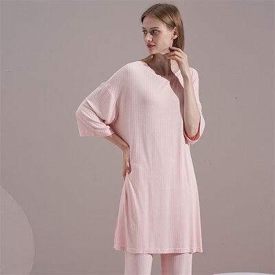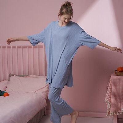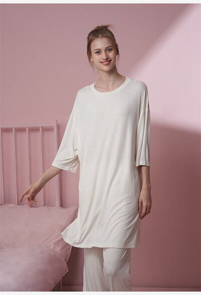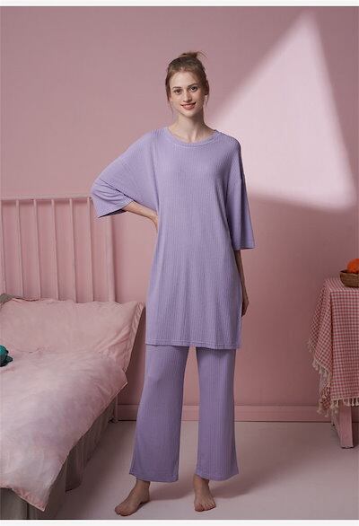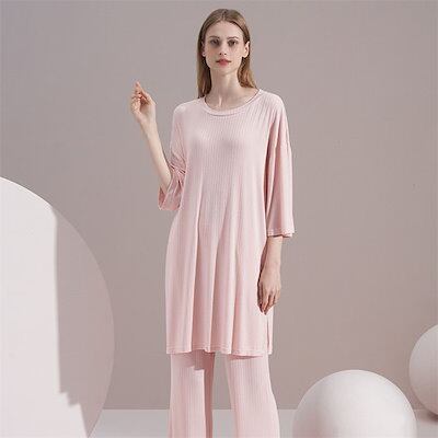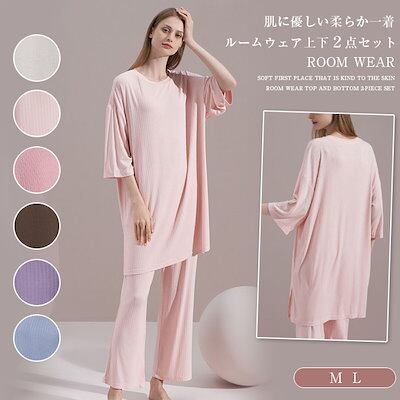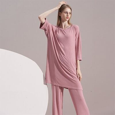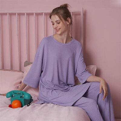 ルームウェア パジャマ 5分袖 上下セット ゆったり 2点セット レディース 可愛い 部屋着 ナイトウエア トップス ズボン モダール綿 無地 婦人 寝間着 在宅勤務 リラックス セットアップ カッ