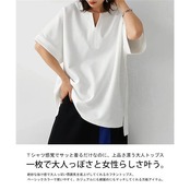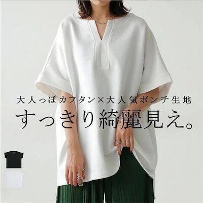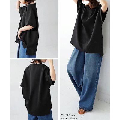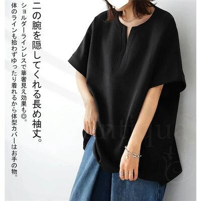 カットソー レディース フレンチスリーブ Tシャツ トップス フレンチ 半袖 二の腕カバー 大きいサイズ 体型カバー お尻が隠れる チュニック tシャツ ロンT