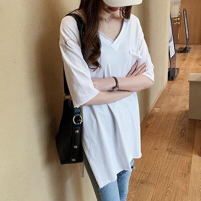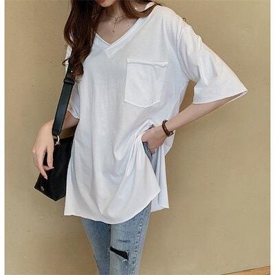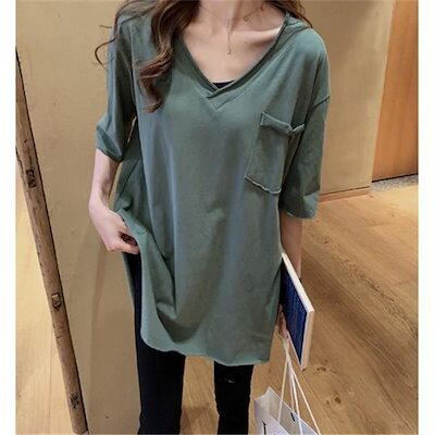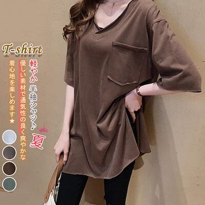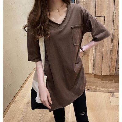 シャツ ロング丈 tシャツ 半袖 カットソー 無地 トップス レディース Tシャツ shirt プルオーバー 夏 ロングTシャツ 体型カバー ロンt カジュアル