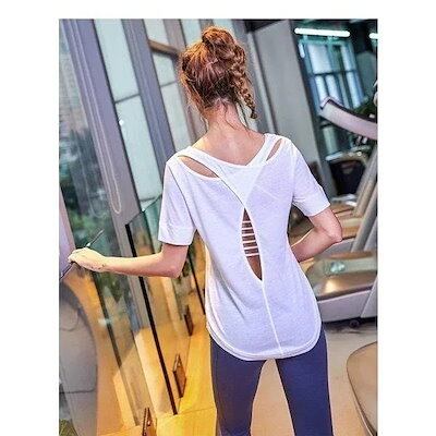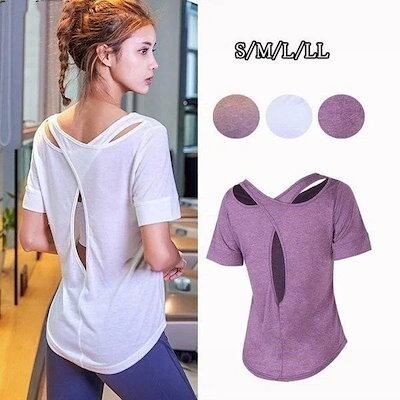 ヨガウェア トップス 半袖 Tシャツ レディース バッククロス 透かし感 スポーツウェア フィットネス ダンス