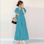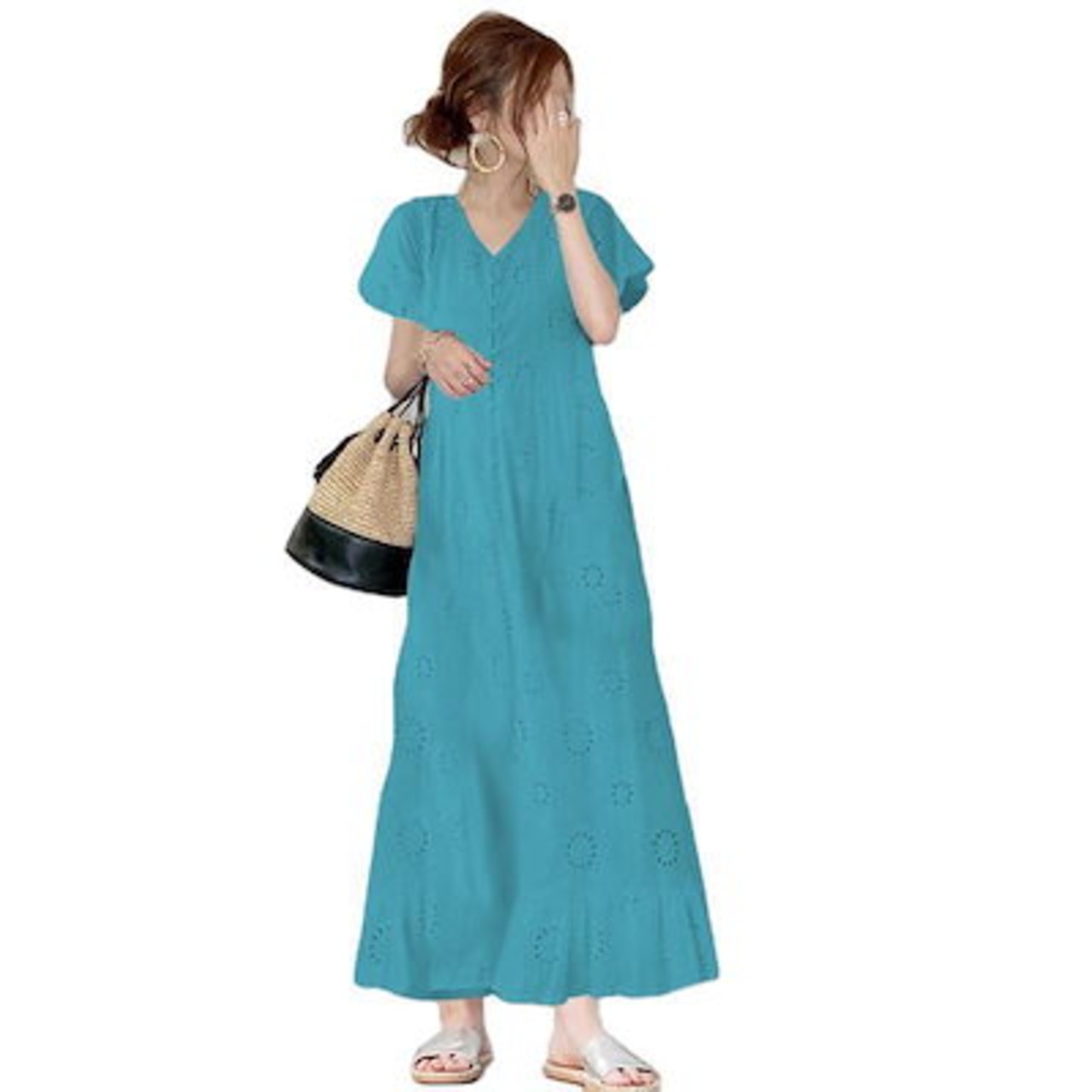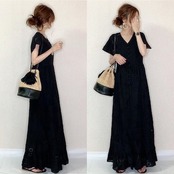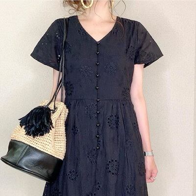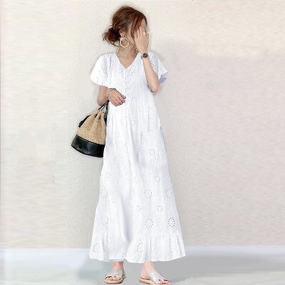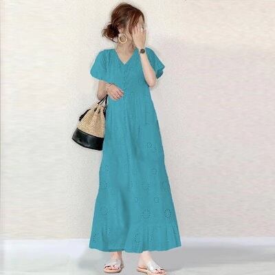 レース ワンピース Vネック 気質 スカート 柔らかい レディース服 トップス 半袖 Tシャツワンピース