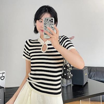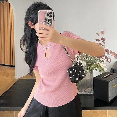 トップス 透ける ニット 半袖 感 レディース服 Tシャツ カットソー 大人可愛い